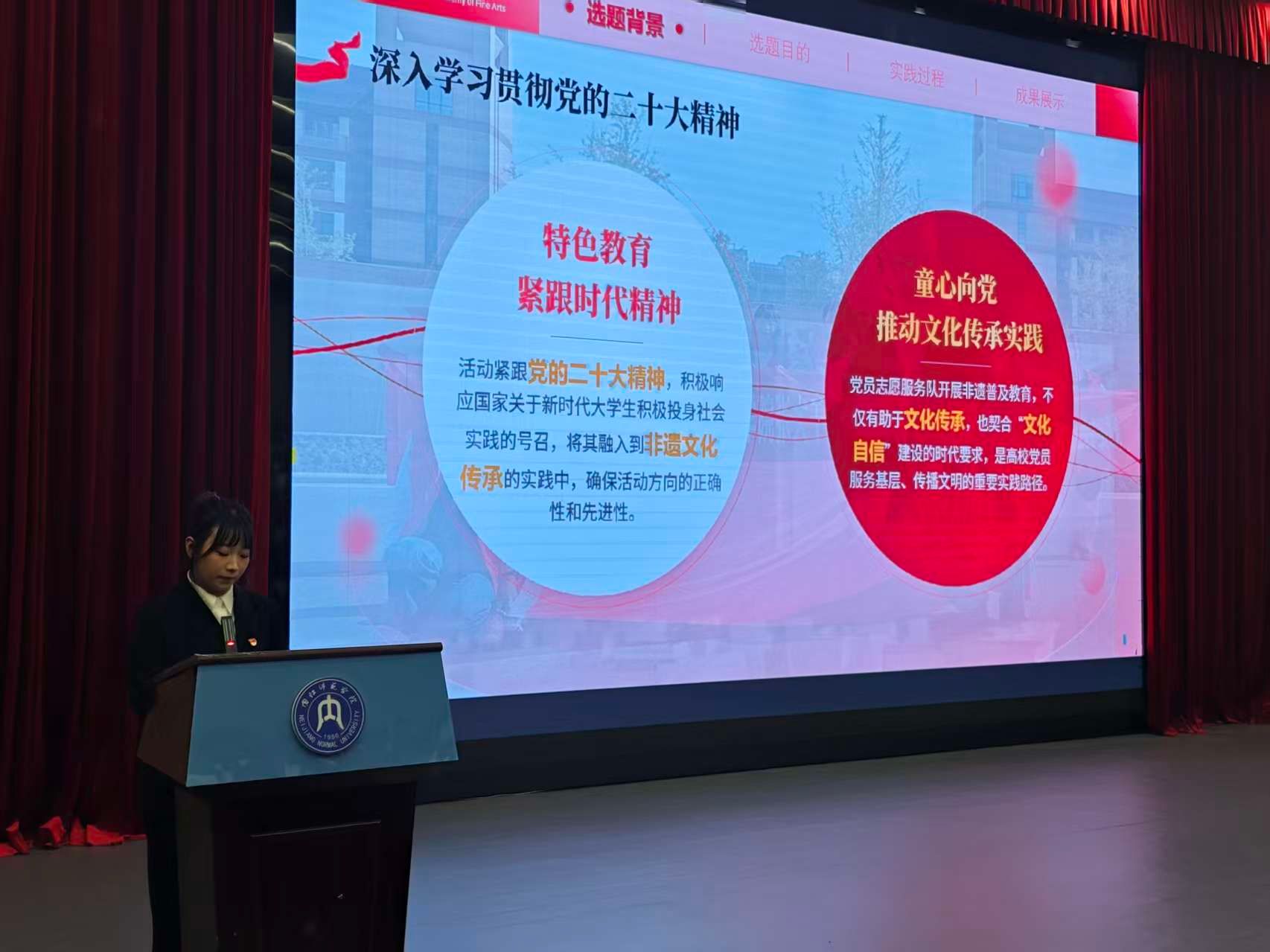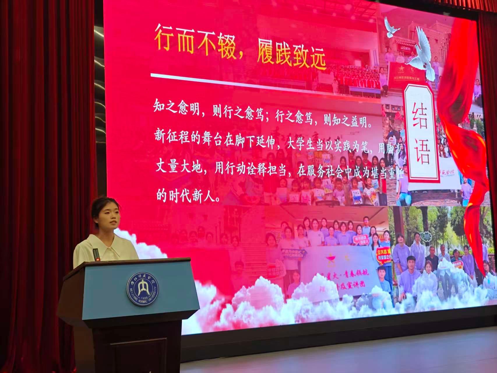 此外,“逐梦扬帆计划”代表李若生分享了在乐山市中医医院党委组织部的实习心得,个人实践代表谢雨欣回顾了参与基层服务的成长历程,展现出美院学子服务社会、甘于奉献的优良风貌。