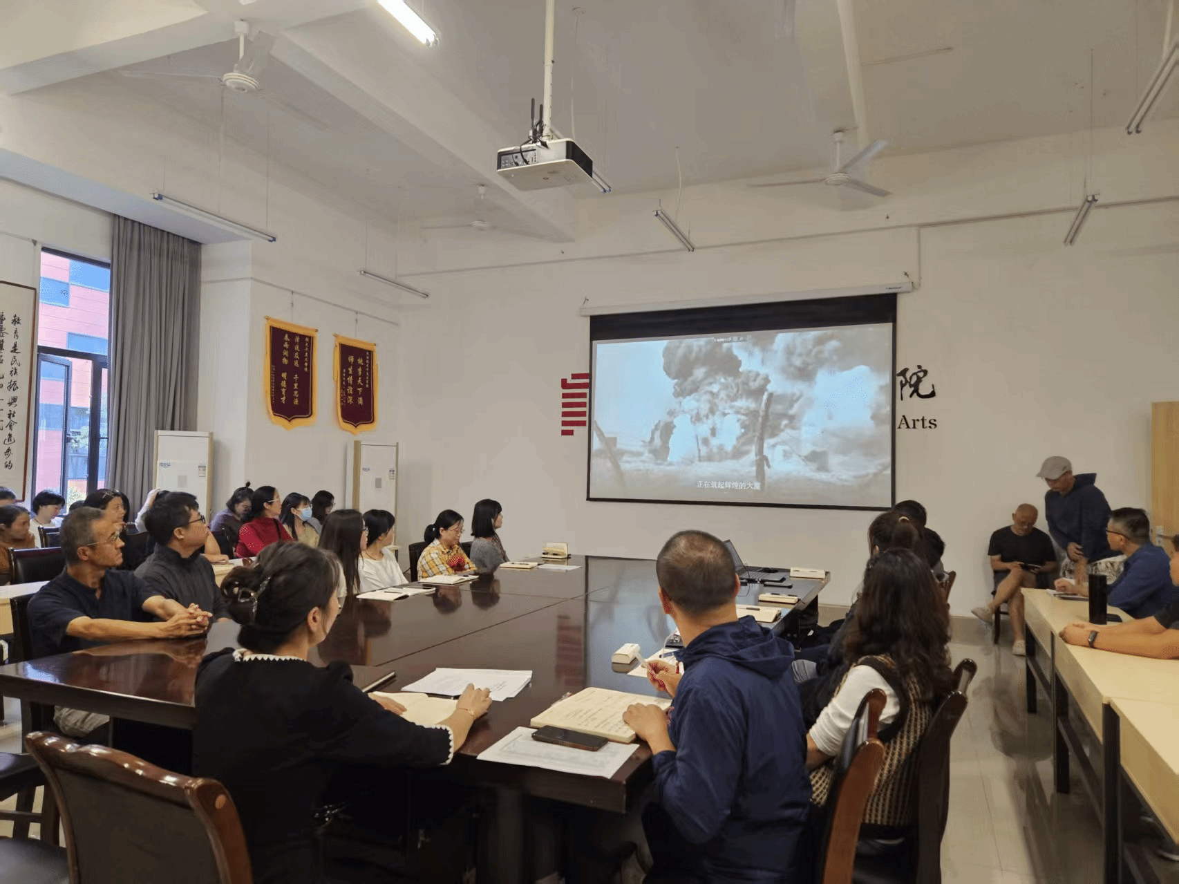 为热烈庆祝中华人民共和国成立,进一步激发全院教师的爱国情怀与使命担当,9 月 22 日下午,张大千美术学院工会精心组织全体教师在学院A109会议室集中观看经典影片《开国大典》,以沉浸式观影的方式重温历史记忆,为即将到来的国庆佳节营造浓厚氛围。