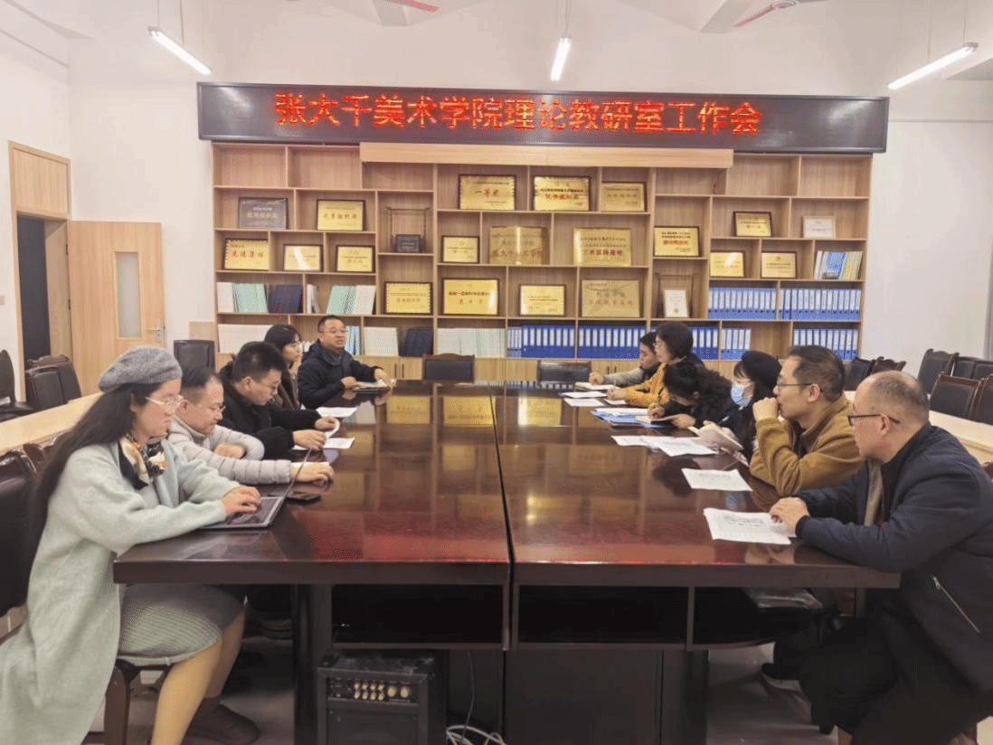 2025 年 11 月 24 日下午,张大千美术学院理论教研室在美术学院 A109 会议室专题召开期末课程试卷工作会。会议由学院副院长罗真主持,理论教研室主任余玲统筹部署具体工作,全体教研室教师参会并围绕期末试卷规范整理展开深入研讨。
