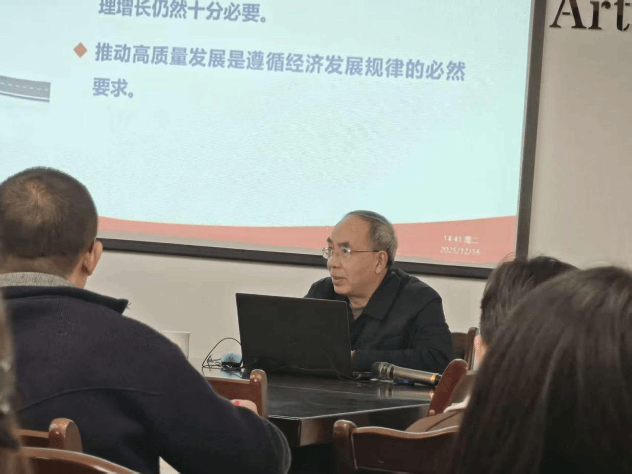 2025年12月16日,学院召开专题学习会,深入学习贯彻党的二十届四中全会精神。内江师范学院党委副书记黄辉以“学习贯彻全会精神,谱写“十五五”时期中国式现代化新篇章”为主题开展专题宣讲,美术学院全体党员干部、师生代表参加了此次学习。