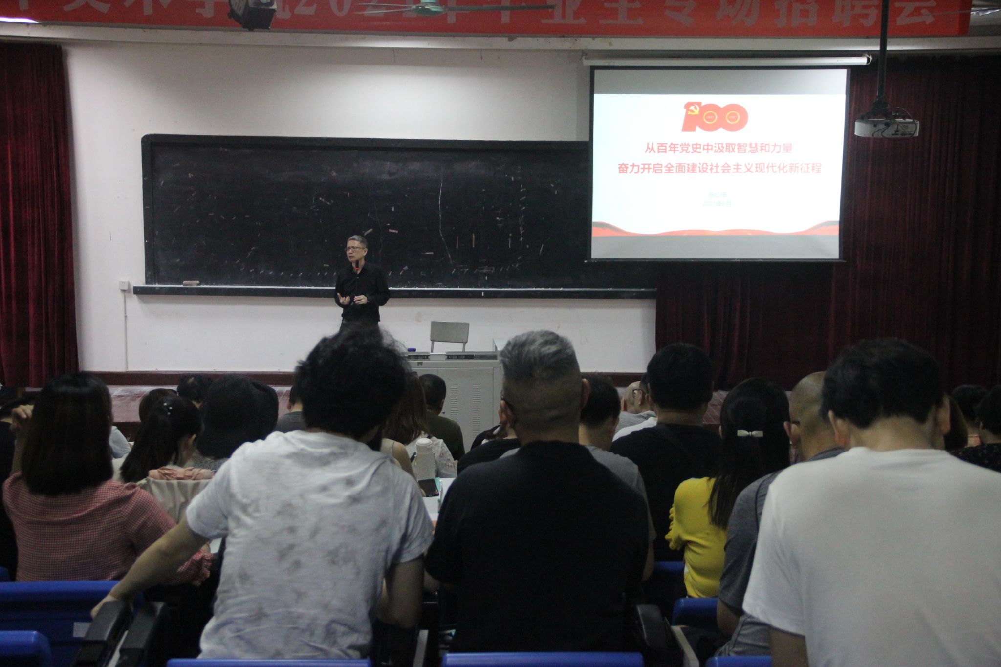 5月31日,为深入开展党史学习教育,学史明志,从百年党史中汲取经验,全面推动学院各项工作再上新台阶。学校党委常委、宣传统战部长张红扬教授在张大千美术学院红楼401以“从百年党史中凝聚智慧和力量,奋力开启全面建设社会主义现代化新征程”为主题,为张大千美术学院和音乐学院二级中心组、全体教师和全体学生党员做专题报告。