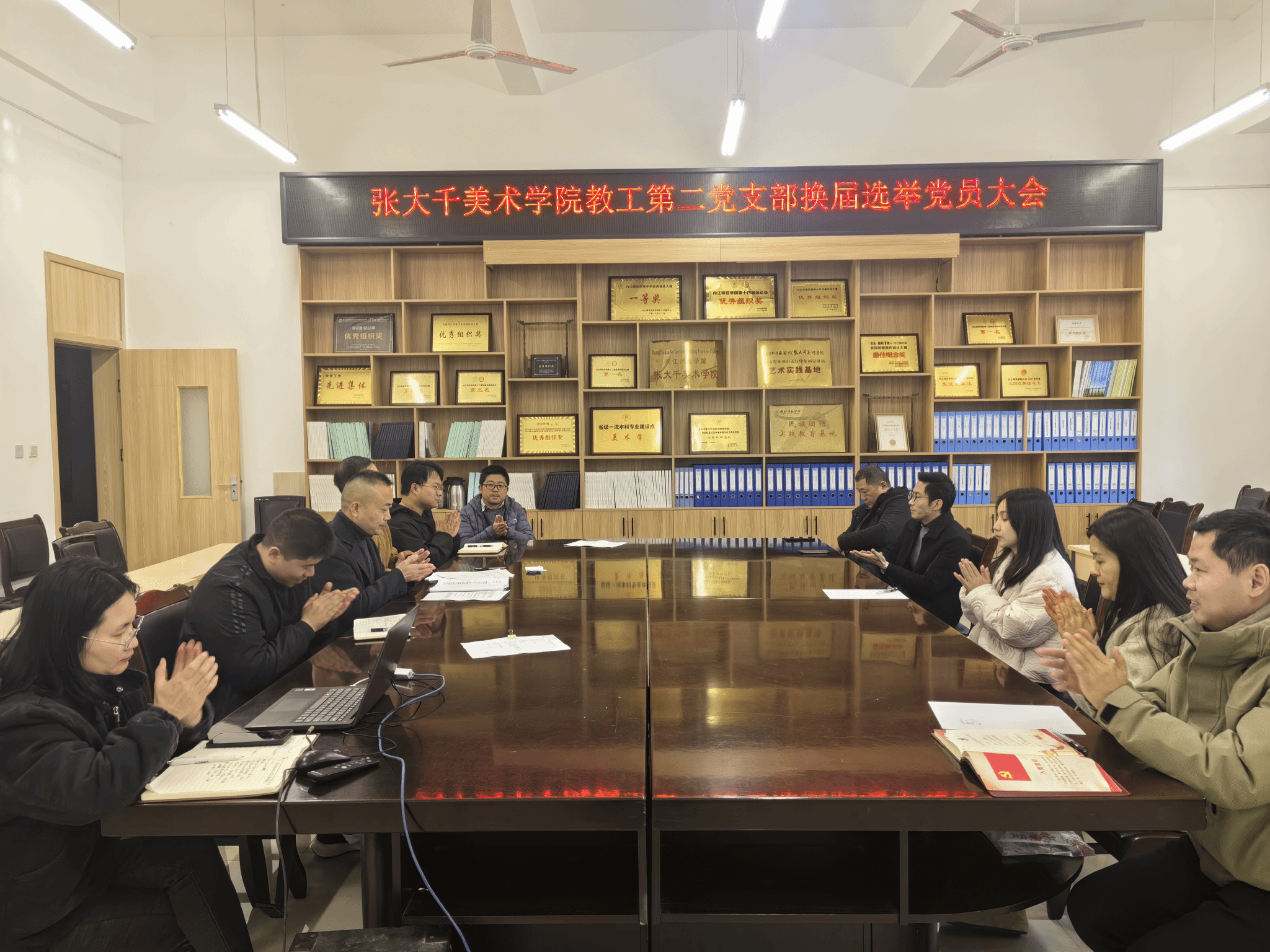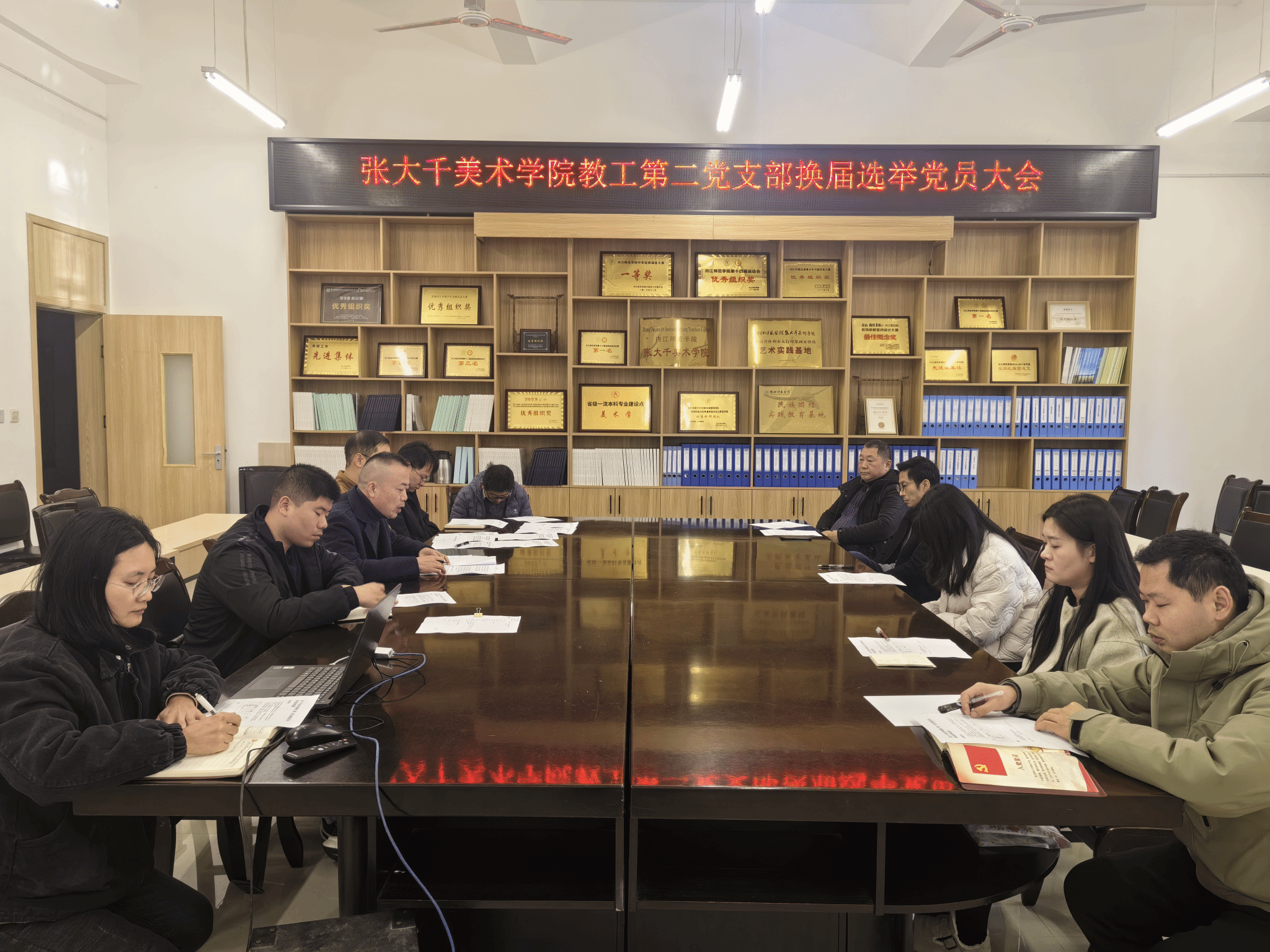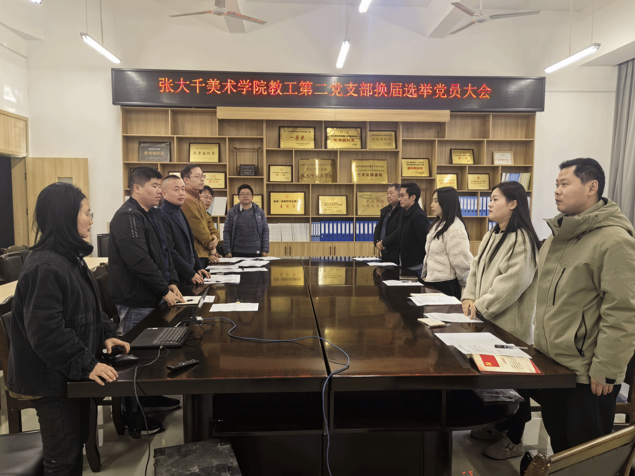 11月14日上午,张大千美术学院教工第二党支部在大千楼A109会议室召开换届选举党员大会。支部13名党员参加会议,会议由上届支部书记杨政主持