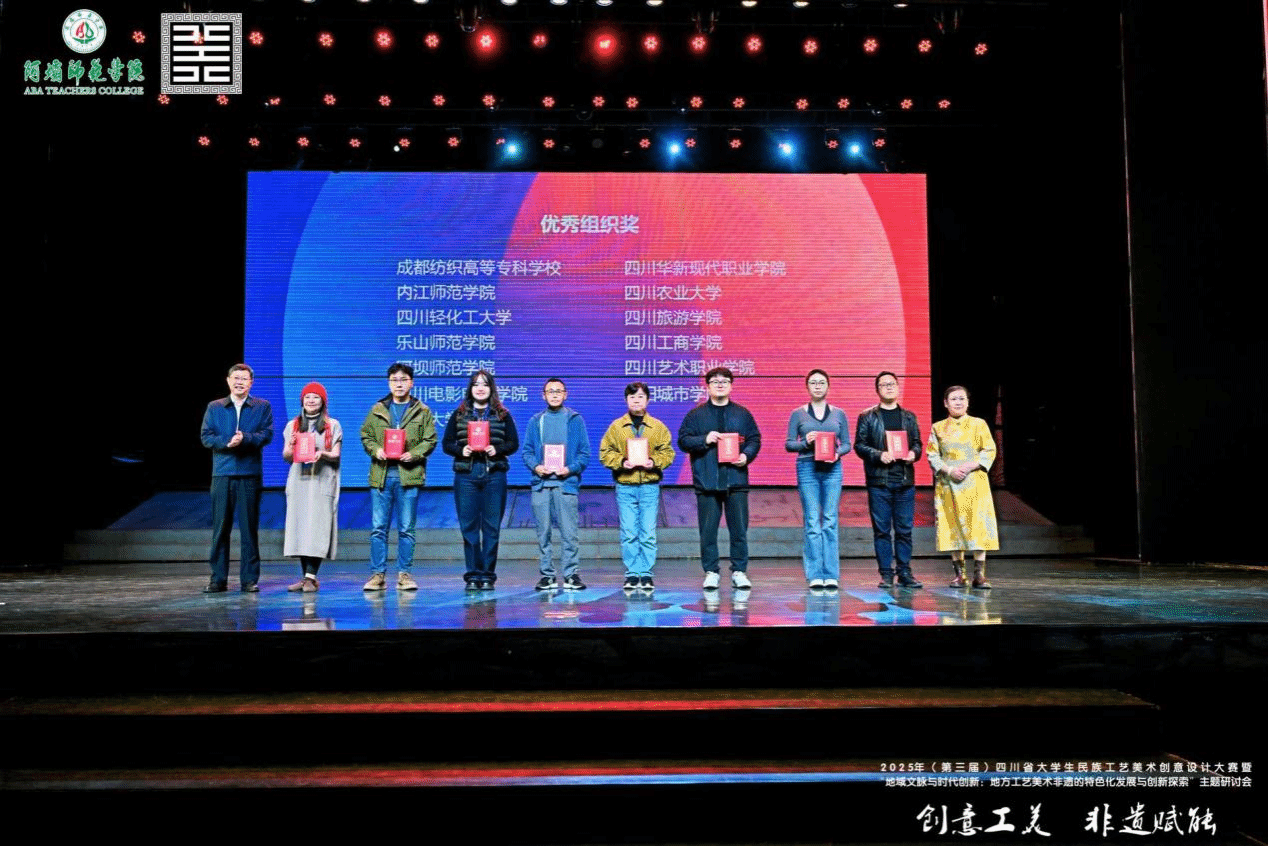 2025 年 10 月 17 日至 19 日,由四川省教育厅主办、阿坝师范学院承办的 2025(第三届)四川省大学生民族工艺美术创意设计大赛决赛圆满收官。张大千美术学院师生踊跃参赛,凭借卓越的专业素养和创新精神,斩获多个重要奖项,充分彰显了学院在民族工艺与现代设计融合教育方面的卓越成果。