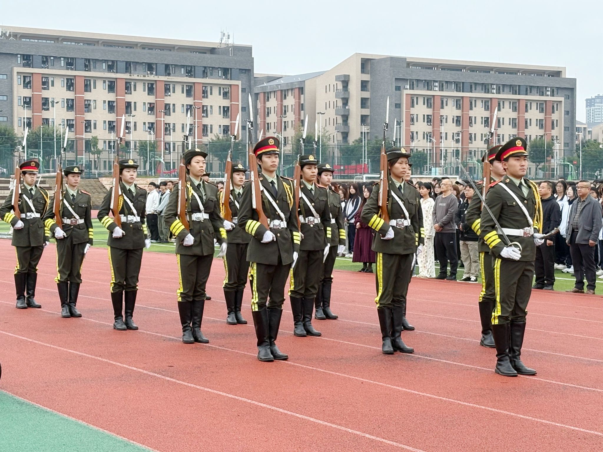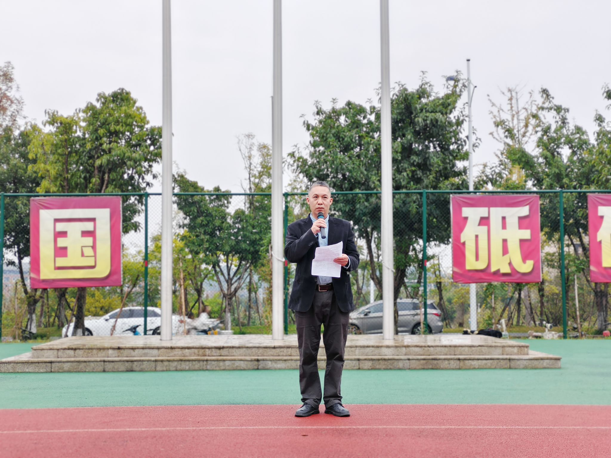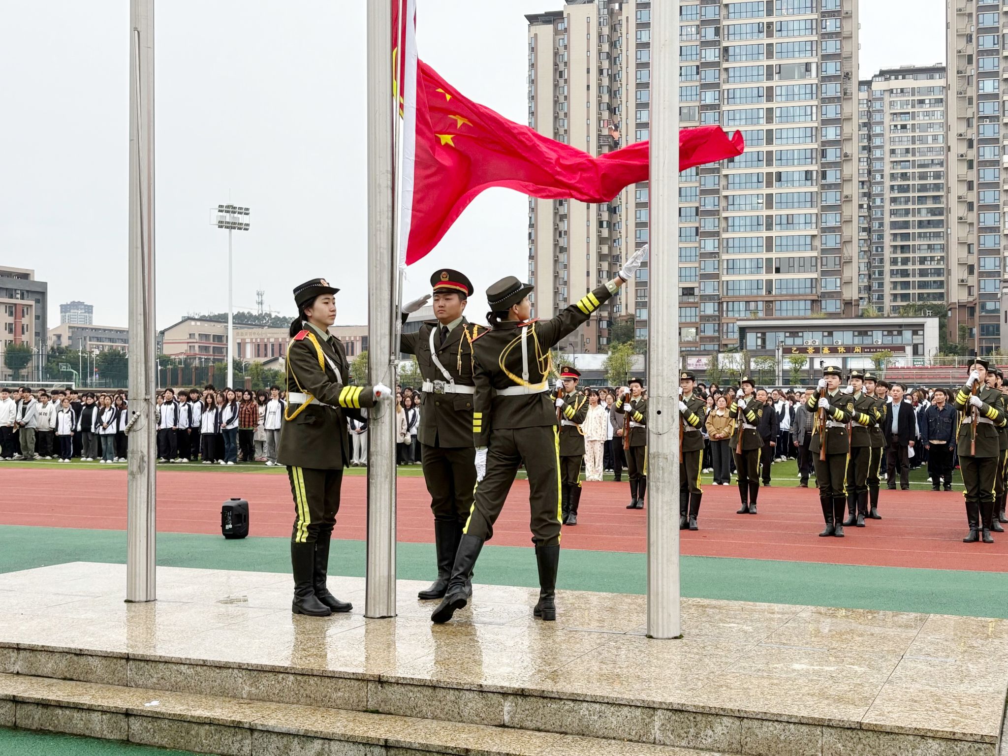 仪式开始,汪书记介绍了出席仪式的各位领导,并代表学院向全体师生致以问候。接着,国旗护卫队迈着铿锵有力的步伐护送国旗入场。在庄严的国歌声中,鲜艳的五星红旗冉冉升起,全体师生面向国旗肃立,齐声高唱国歌,展现出我院师生昂扬向上的精神风貌。