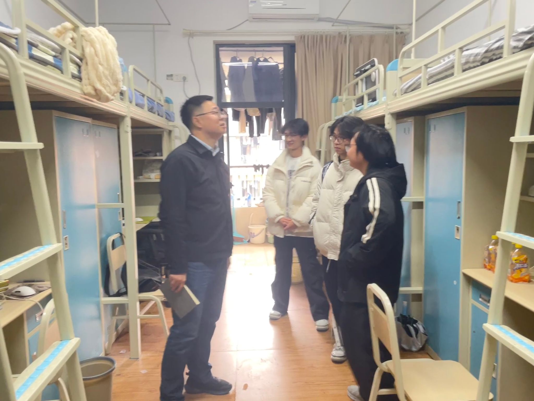 活动期间,刘磊老师还走访了学生寝室,关心同学们的日常生活环境,叮嘱大家要共同维护安全、整洁、和谐的居住空间,为专注学习提供有力保障。