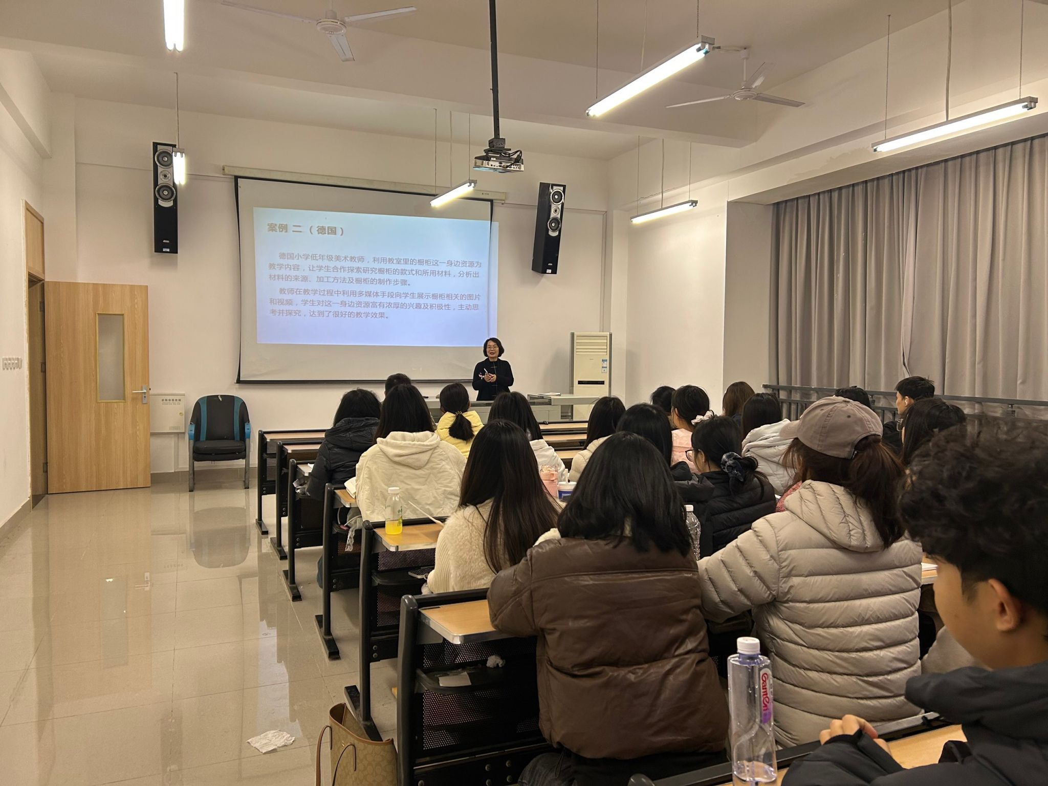 活动伊始,高登明副院长在A413教室随堂听取了张静老师讲授的《中学美术课程开发》课程,实地了解公费师范生的课堂学习状态与教学实况。随后,高院长与班级同学在B411专业教室进行座谈交流。他围绕“大学生活规划与专业发展”主题,结合公费师范生培养特点,对师范专业认证要求、职业发展路径及就业政策进行了细致解读。高登明副院长还以“大学生科研诚信与素养”为题作专题讲座,强调学术规范与职业道德对师范生成长的重要意义。最后,高登明副院长前往男生宿舍进行走访,深入了解学生的住宿条件与日常生活,叮嘱同学们营造安全、文明、和谐的宿舍环境。