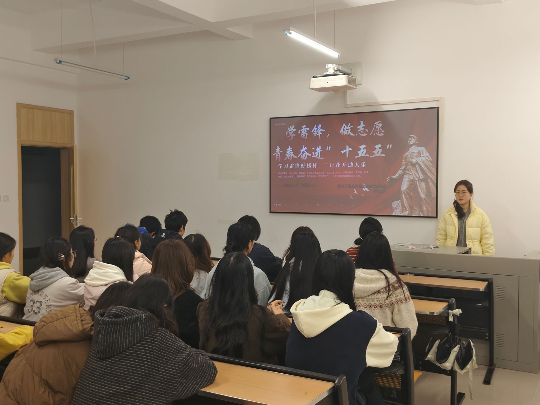 为深入弘扬雷锋精神、培育青年学生志愿情怀,引导学生将志愿服务与奋进“十五五”新征程紧密结合,3月8日,我院组织学生召开“学雷锋 做志愿 青春奋进‘十五五’”主题班会,班会由各班团支书主持。