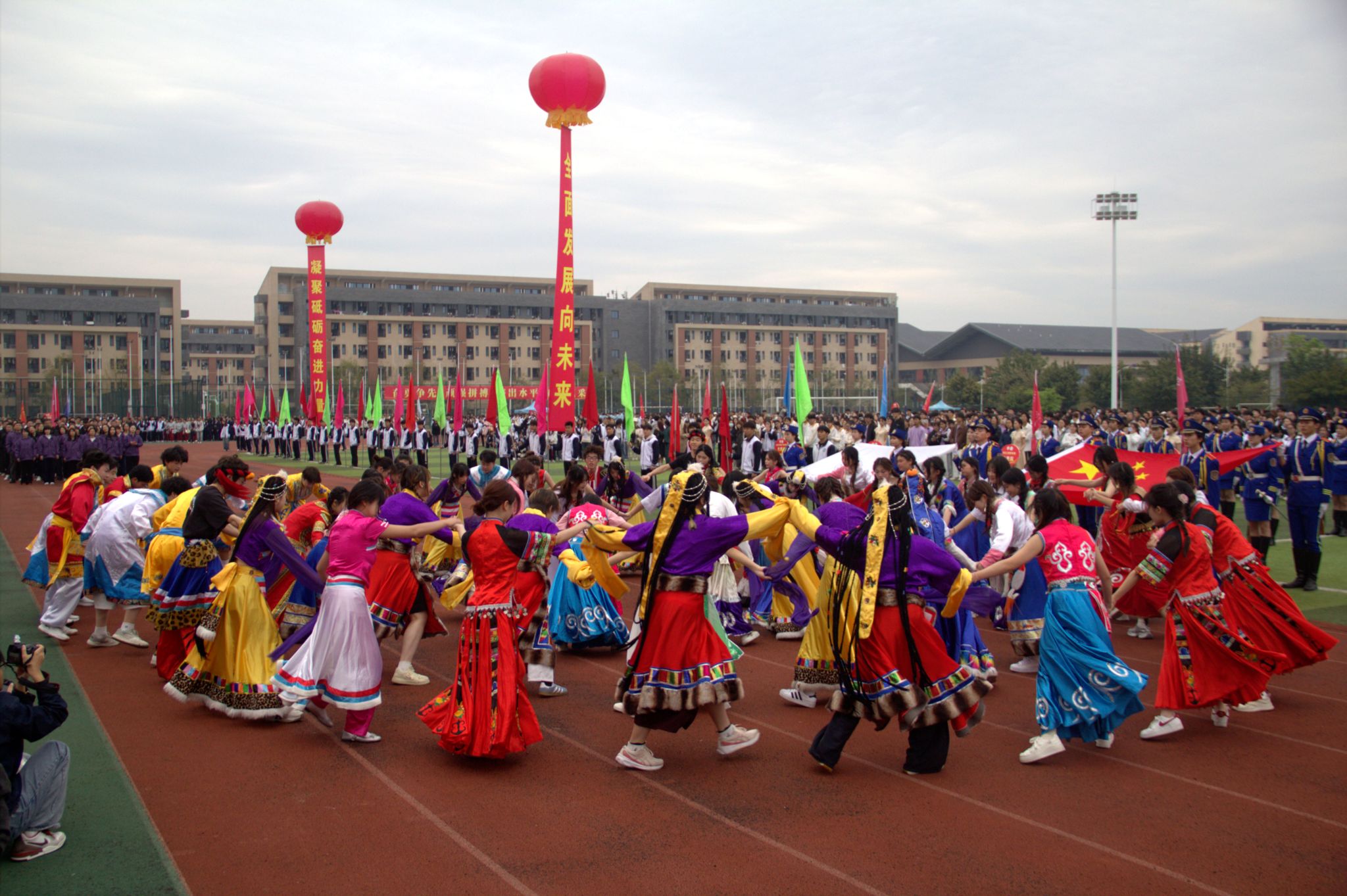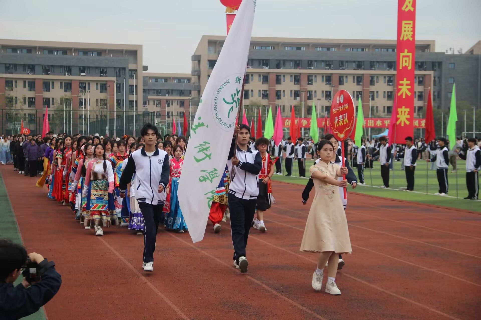 开幕式上,各学院方阵依次入场,特色文艺展演精彩纷呈。我院学子身着五十六个民族特色服饰组成方阵,伴随着《哈尼宝贝》的动感旋律翩然起舞,既展现了扎实的艺术素养与文化创意,也生动诠释了民族团结一家亲的深厚内涵,成为开幕式上一道亮丽的风景线。紧随其后,我院教师方阵步伐整齐、精神抖擞,充分展现出昂扬向上的师者风貌。