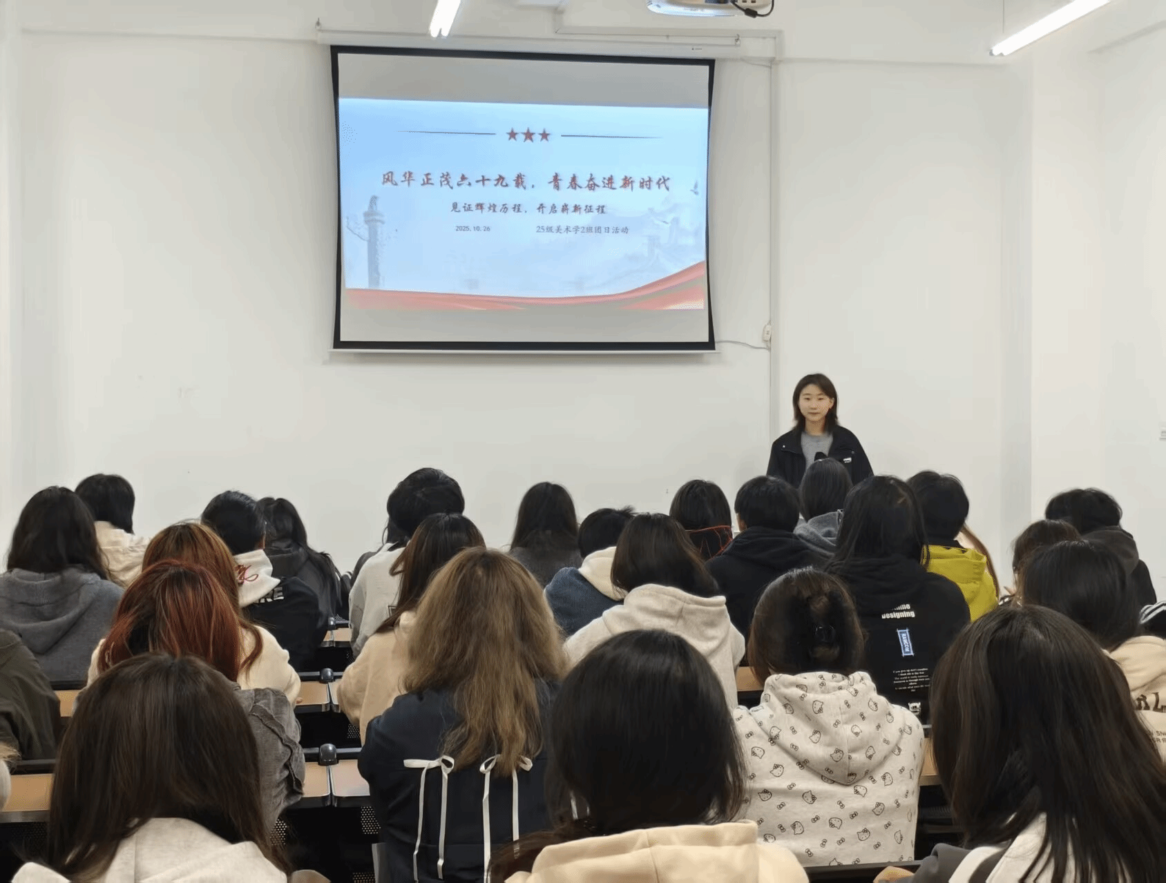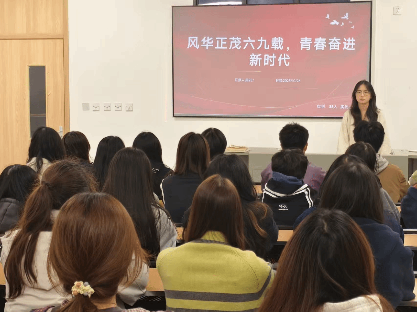 为庆祝内江师范学院建校69周年,引导广大团员青年坚定理想信念、践行使命担当,10月26日晚,我院组织2025级各班在大千楼教室开展了十月主题团日活动。本次活动由各班团支书主持,全体同学参加。