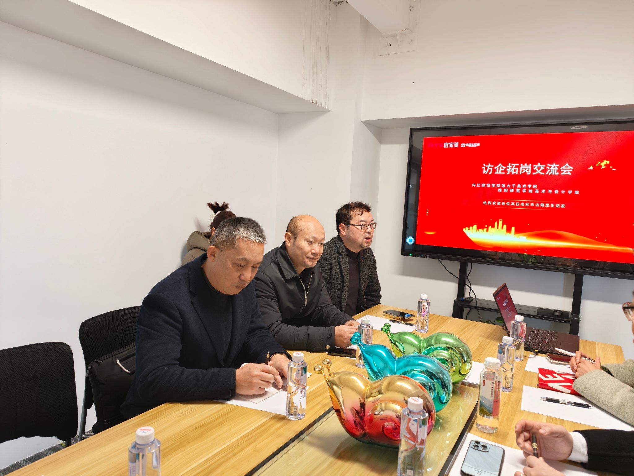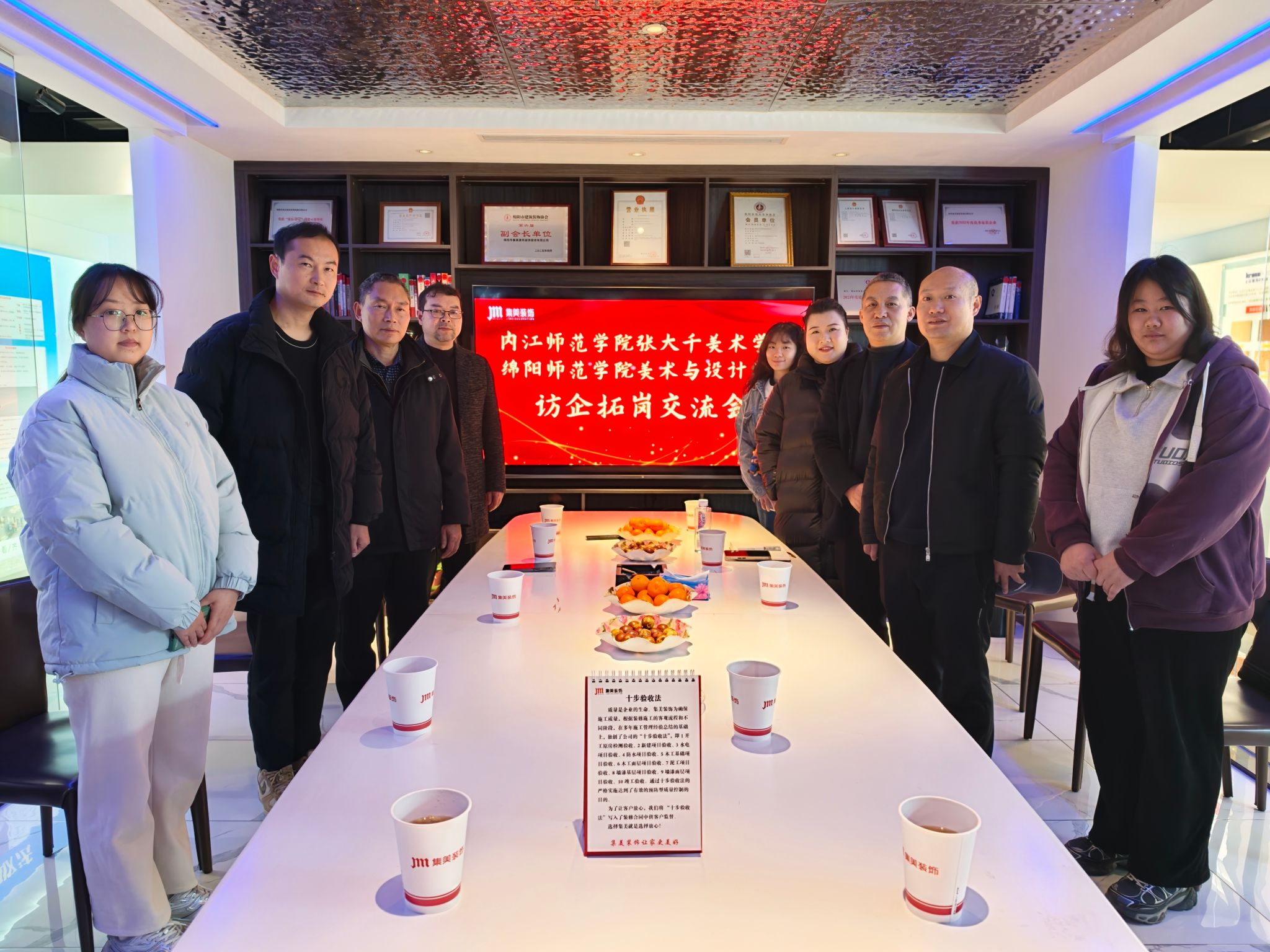 在绵阳市集美建筑装饰设计有限公司,双方围绕建筑装饰全流程设计的岗位标准展开深入座谈。学院结合设计专业优势,重点了解企业在人才招聘中的具体要求,双方就“企业案例进课堂”“学生实习实践”等话题交换思路,汪隆友副书记代表我院现场向企业发出到校招聘的邀请。